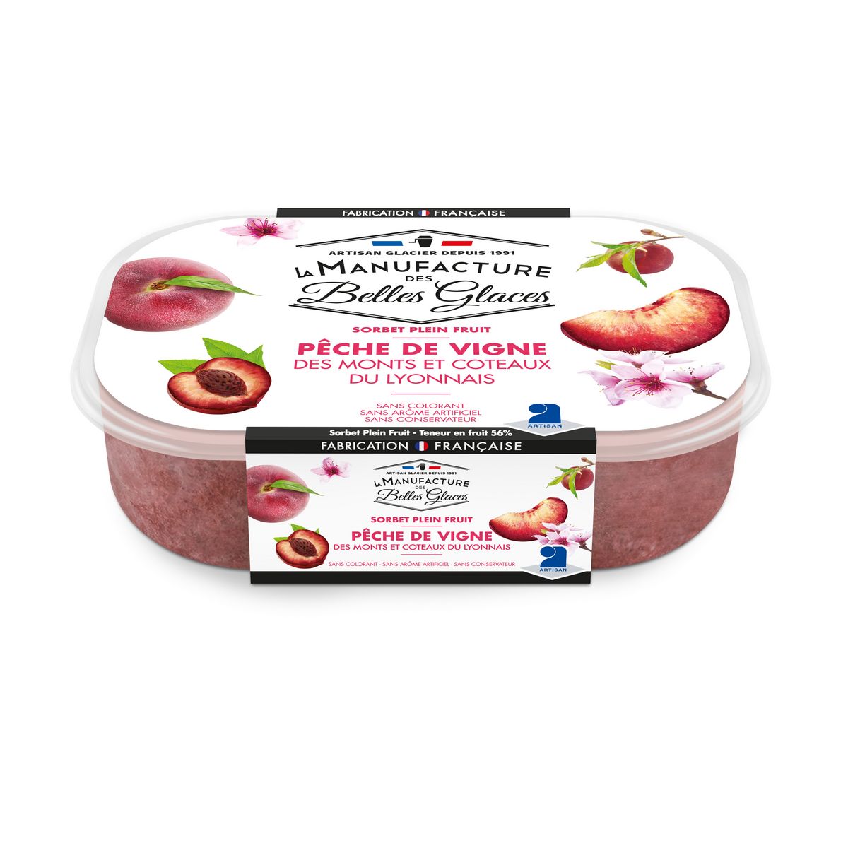 Sorbet plein fruit Pêche de vigne des monts et coteaux du lyonnais 56% de fruit 750 mL / 487,5g