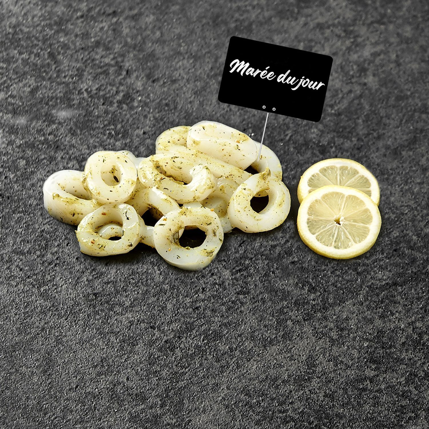 Anneaux d'encornet décongelés marinés thym citron