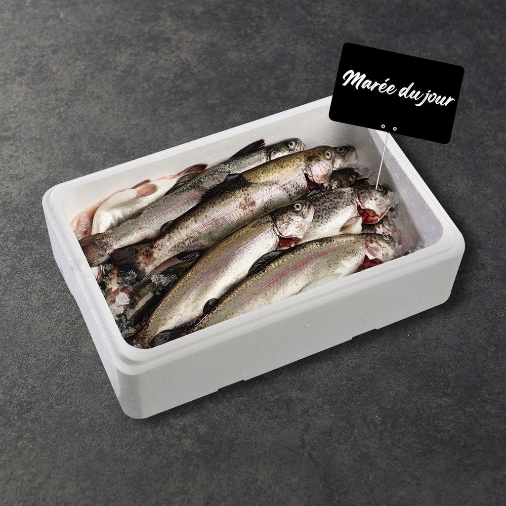 Caisse de truite rose vidée avec tête pièce de 200 à 300 g