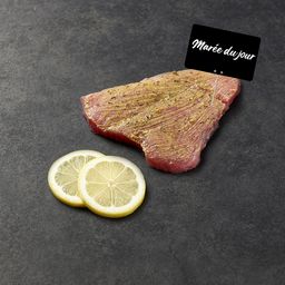 Long d'ESPADON (Xiphias gladius), graisse végétale non hydrogénée (colza, beurre de cacao), sel de cuisine, tomates séchées 10 %, épices, plantes aromatiques, poivron séché, oignons séchés, ail séché.