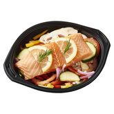 Aneth, Tomate, Courgette, Champignon, Poivron, Citron, oignon rouge, Salmo salar.