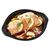 Pavé de saumon, courgettes, tomates, champignons blanc, oignons et poivrons rouges.