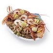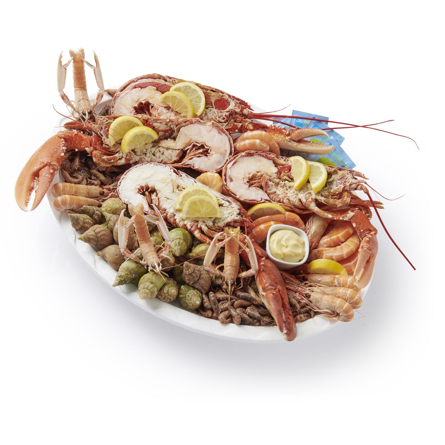 HOMARD canadien cuit, BULOTS cuits, CREVETTES 40/60 cuites (SULFITES), LANGOUSTINES 25/35 cuites, CREVETTES grises (SULFITES), Mayonnaise (Huile de colza, eau, jaune D'OEUF, MOUTARDE (eau, graine de MOUTARDE, vinaigre d'alcool, sel, antioxydant : diSULFITE de potassium, acidifiant : acide citrique), vinaigre d'alcool, sel, sucre, amidon modifié, colorants : lutéine et extrait de paprika, arôme).