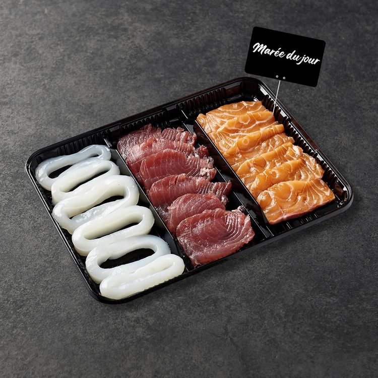 Plateau plancha saumon thon et anneaux d'encornet nature