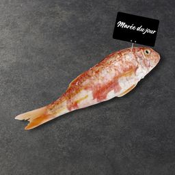 Rouget barbet vidé et gratté avec tête pièce