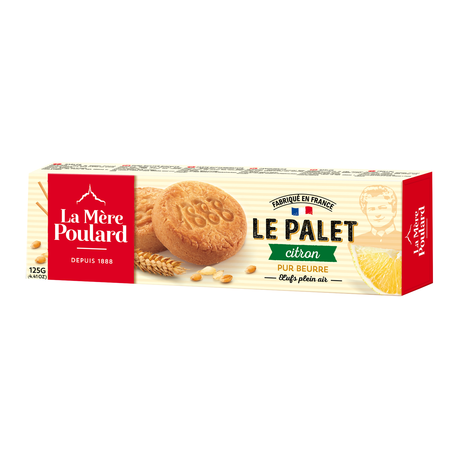 Farine de froment (France), beurre (23%), sucre, pâte de citron (5%) (écorces de citron, sirop de glucose-fructose, sucre, correcteur d'acidité : acide citrique), ŒUFs (2.6%), jaunes d'ŒUFs en poudre (1.3%), arôme naturel de citron (0.8%), sel.