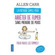 En 1983, Allen CARR a conçu La Méthode simple pour en finir avec la cigarette , qui deviendra un best-seller vendu à plus de 14 millions d'exemplaires dans le monde. Il est considéré comme l'expert n° 1 de l'assistance aux fumeurs et a adapté sa méthode à de nombreux autres domaines. Retrouvez les méthodes de l'auteur sur : www. allencarr. com L'emprise de la cigarette est particulièrement profonde et complexe chez les femmes. Renforcer la confiance en soi, respecter les moments de la vie d'une femme, éviter la prise de poids... Allen Carr s'attaque ici aux aspects purement féminins de la dépendance au tabac. Pour se libérer de manière douce, rapide et sans substituts ! @ Disponible chez 12-21 L'EDITEUR NUMERIQUE