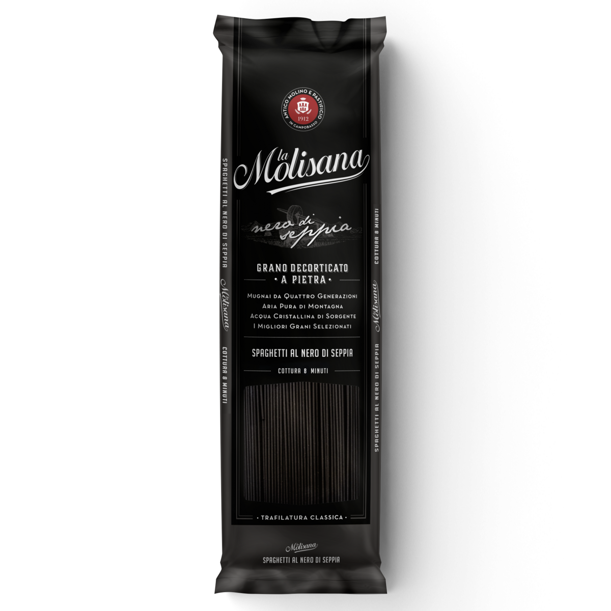 Les Spaghetti à l'encre de seiche sont fabriqués sans conservateurs ni colorants, uniquement avec des matières premières de première qualité et proposés dans un bel emballage noir très élégant .