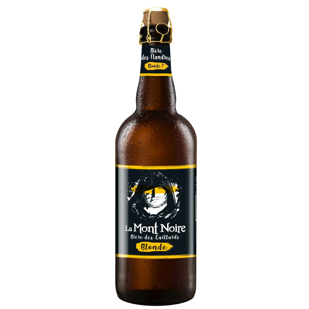 En Flandres, région de tradition brassicole, se dresse entre France et Belgique Le Mont Noir. Forêt de pins noirs parcourue de sentiers permettant le passage d'un pays à l'autre, ce lieu mystérieux reste encore aujourd'hui une terre de légendes. D'anciens récits relatent l'époque où de solides Gaillards empruntaient à la nuit tombée ces chemins de traverse pour passer la frontière sas réveiller les soupçons. Hommes téméraires, contrebandiers occasionnels, ils aiment se retrouver dans les estaminets pour partager une bonne bière, à se raconter leurs aventures et comment ils se jouaient parfois de la vigilance des douaniers Savourer une Mont Noire, c’est retrouver l’esprit des estaminets Flamands, se plonger au coeur de discussions passionnées et passionnantes où se mêlent complicité et rivalité. Comme les Gaillards d’autrefois, dégustez vous aussi, avec modération bien sûr, cette délicieuse bière blonde à la mousse blanche et légère, symbole de courage, de ruse, de défis relevés, d’honneur et de partage . Fruit d’un savoir-faire ancestral, la Mont Noire est un savant mélange de modernité et de tradition. Seul ou entre amis, elle se découvre, se partage et se laisse savourer, alors bonne dégustation et bienvenue dans le monde des Gaillards