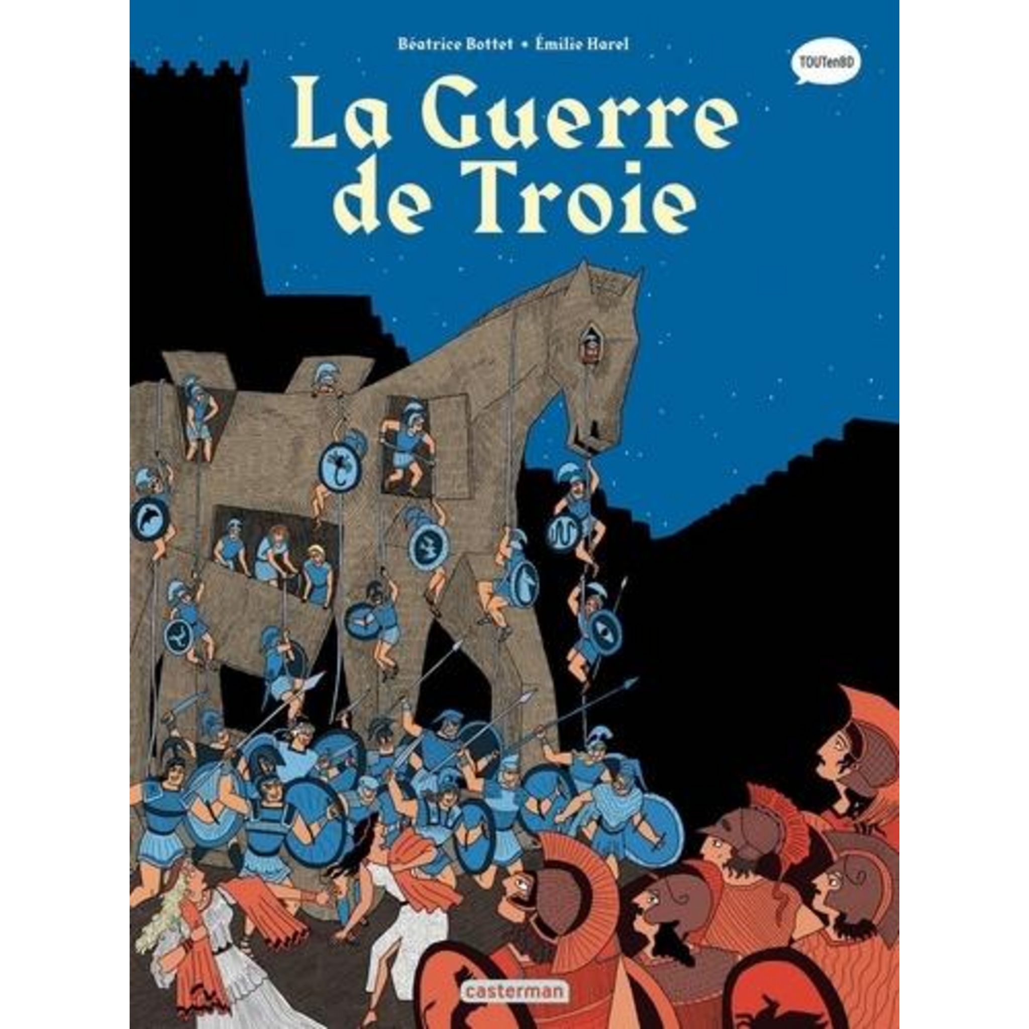 La Guerre de Troie, l'épisode mythologique le plus emblématique ! Trois ans après la publication de L'Odyssée, qui inaugurait la collection Mythologie en BD, voici un nouveau récit incontournable : la guerre de Troie. On y retrouve bien sûr la colère d'Achille magnifiée par Homère dans son Iliade, mais aussi tous les tenants et aboutissants de cette épopée légendaire. De la pomme de Discorde au cheval de Troie, du jugement de Pâris à l'évocation du destin des survivants (Ulysse, Agamemnon, Enée...), cette bande dessinée mêle avec bonheur la rigueur historique et l'humour : une parfaite adaptation pour les jeunes lecteurs.