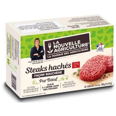 Steak haché pur bœuf surgelé façon bouchère 15%mg