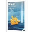 Francis Bacon (1561-1626), philosophe et homme politique, auteur du Novum Organum, laisse à sa mort une Atlantide inachevée, que son secrétaire s'empresse de publier. La Nouvelle Atlantide : le rêve d'une société par et pour la science , le premier tracé - utopique - de ce qu'on nommera plus tard l'Etat-providence , une île des mers du Sud où se combinent les souvenirs de l'Ancien Testament et le projet d'une épistémologie neuve que Bacon cherchait à promouvoir , une description de parcs zoologiques qui semble inaugurer la science-fiction , une fête de la Famille où l'on vénère un père prolifique tandis que la mère reste cachée... Le philosophe, qui avait pensé une organisation collective de la recherche, en décline ici les attendus éthiques, politiques et surtout imaginaires.