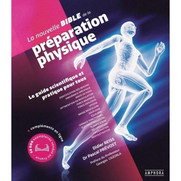 Cet ouvrage, déjà vendu à plus de 50000 exemplaires, est devenu LA référence absolue dans le domaine de la préparation physique. Que vous soyez sportif, étudiant ou encadrant, vous y trouverez les réponses aux questions que vous vous posez, quels que soient votre niveau, votre sport et vos objectifs. Cette troisième édition, présentée entièrement en couleurs pour un meilleur accès aux informations, bénéficie des dernières mises à jour en lien avec les nouvelles connaissances scientifiques. Conseillée dans nombre d'universités et de centres de formation en France et à l'étranger, cette nouvelle Bible de la préparation physique est entièrement réécrite et réactualisée avec, en bonus + Un nouveau chapitre totalement inédit sur la réathlétisation , + Le glossaire complété , + Un index pour mieux retrouver les informations , + Des questions ajoutées à la fin de chaque chapitre pour vous tester , + De nouvelles aides proposées via des QR-codes , + Des chapitres ayant chacun une couleur spécifique pour mieux se repérer. Traités de façon indépendante, ils peuvent selve dans le désordre si le lecteur le souhaite. Des renvois sont proposés pour des compléments vers les autres chapitres si nécessaire. Endurance spécifique, perte de poids, musculation force maximale, explosivité. vitesse, force endurance, masse musculaire, souplesse équilibre. gainage fonctionnel. récupéra- non, réathlétisation... Chaque chapitre fait en permanence le va-et-vient entre théorie et pratique, vous amenant à réfléchir sur la logique de vos séances. Pour les aspects de terrain, des exemples sont donnés pour trois niveaux : le débutant. l'entrait-lé et le sportif qui cherche une aide supplémentaire pour sa préparation, mais qui ne veut pas faire de la qualité physique concernée un objectif principal. Les points abordés sont documentés et illustrés afin que vous compreniez mieux les principes permettant d'atteindre les objectifs fixés, en toute sécurité et avec une efficacité avérée.