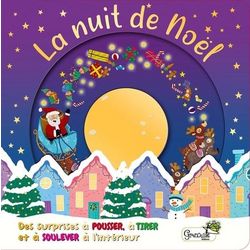 La nuit de Noël est un bel album cartonné aux multiples surprises à ouvrir, tirer et pousser, pour annoncer l'arrivée imminente du père Noël, sur le rythme d'une comptine traditionnelle. Grâce à un ingénieux système de tirettes, les habitants de la maisonnée prennent vie, l'enfant peut également s'a
