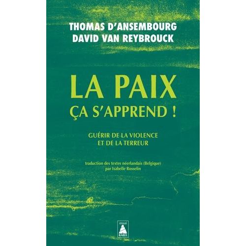Quelques jours après les attentats de Paris en novembre 2015, Thomas d'Ansembourg et David Van Reybrouck décident d'écrire, comme un geste salvateur et avec les moyens qui leur sont donnés, leur contribution au débat parfois trop souvent parasité par les relents sécuritaires. De ce dialogue est née une réflexion, une tentative, un point de vue original pour guérir en profondeur des terribles violences qui déchirent nos sociétés : apprendre la paix. User de la pleine conscience et de la bienveillance pour se construire autrement en tant qu'individu et citoyen. En résulte que, face à l'accumulation de burn-out, dépressions et suicides, devant l'agressivité, la peur et toutes les formes de vi olence, la connaissance et la pacification de soi apparaissent comme des enjeux de santé, voire de sécurité publique. La clé d'un développement social durable.
