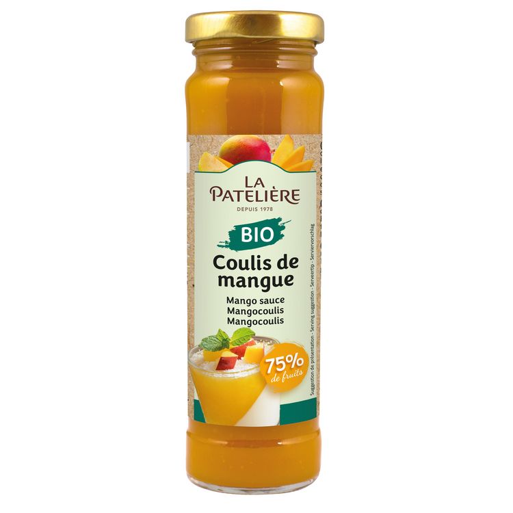 Coulis de mangue, de couleur orangé, pour napper des préparations.