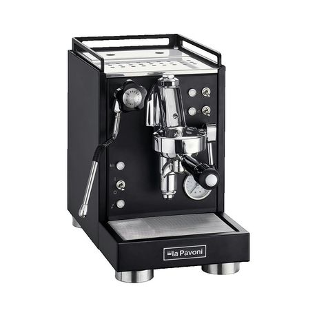 La Pavoni Mini Cellini est une machine à café expresso semi-automatique haut de gamme. Elle offre une puissance de 1400 W et un design élégant en noir et acier inoxydable. Équipée d'un groupe d'extraction E61 garantissant une stabilité thermique, elle dispose d'un réservoir d'eau amovible de 2,9 lit