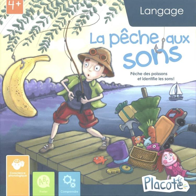 Es-tu prêt à pêcher des poissons ? Regarde les images qu'ils cachent, dis les mots à haute voix et écoute bien les sons. Certains poissons voudront retourner à l'eau ! D'autres devront retrouver leur famille. D'autres encore te serviront à nourrir des animaux. Bonne pêche ! La pêche aux sons aide les enfants de 4 ans à 6 1/2 ans à prendre conscience des syllabes et des rimes. Ce jeu leur permet de développer dans le plaisir cette habileté qui est essentielle pour l'apprentissage de la lecture. Ce jeu comprend : 48 poissons en bois aimantés, 1 canne à pèche, 1 planche Cours d'eau , 6 planches de jeu : Panier de pêche au recto et Glacières au verso, 1 guide d'accompagnement, les règles du jeu.