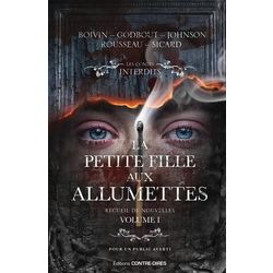 La petite fille aux allumettes apparaît dans tous les Contes interdits. Mais son identité est multiple. Quels secrets peut-elle bien cacher ? Dans ce recueil de nouvelles horrifiques, les auteurs racontent chacun l'histoire de la petite fille aux allumettes apparaissant dans l'un de leurs Contes interdits. Ce premier volume rassemble les textes de Christian Boivin, Yvan Godbout, Sylvain Johnson, Simon Rousseau et L.P. Sicard. Découvrez dans ces pages les récits enflammés de leur petite fille aux allumettes...