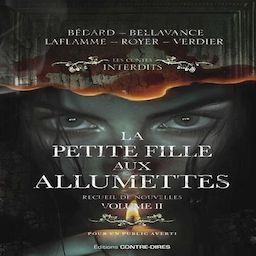 La petite fille aux allumettes apparaît dans tous les Contes interdits. Mais son identité est multiple. Quels secrets peut-elle bien cacher ? Dans ce recueil de nouvelles horrifiques, les auteurs racontent chacun l'histoire de la petite fille aux allumettes apparaissant dans l'un de leurs Contes interdits. Ce deuxième volume rassemble les textes de David Bédard, Dominic Bellavance, Steve Laflamme, Maude Royer et Vic Verdier. Découvrez dans ces pages les récits enflammés de leur petite fille aux allumettes...