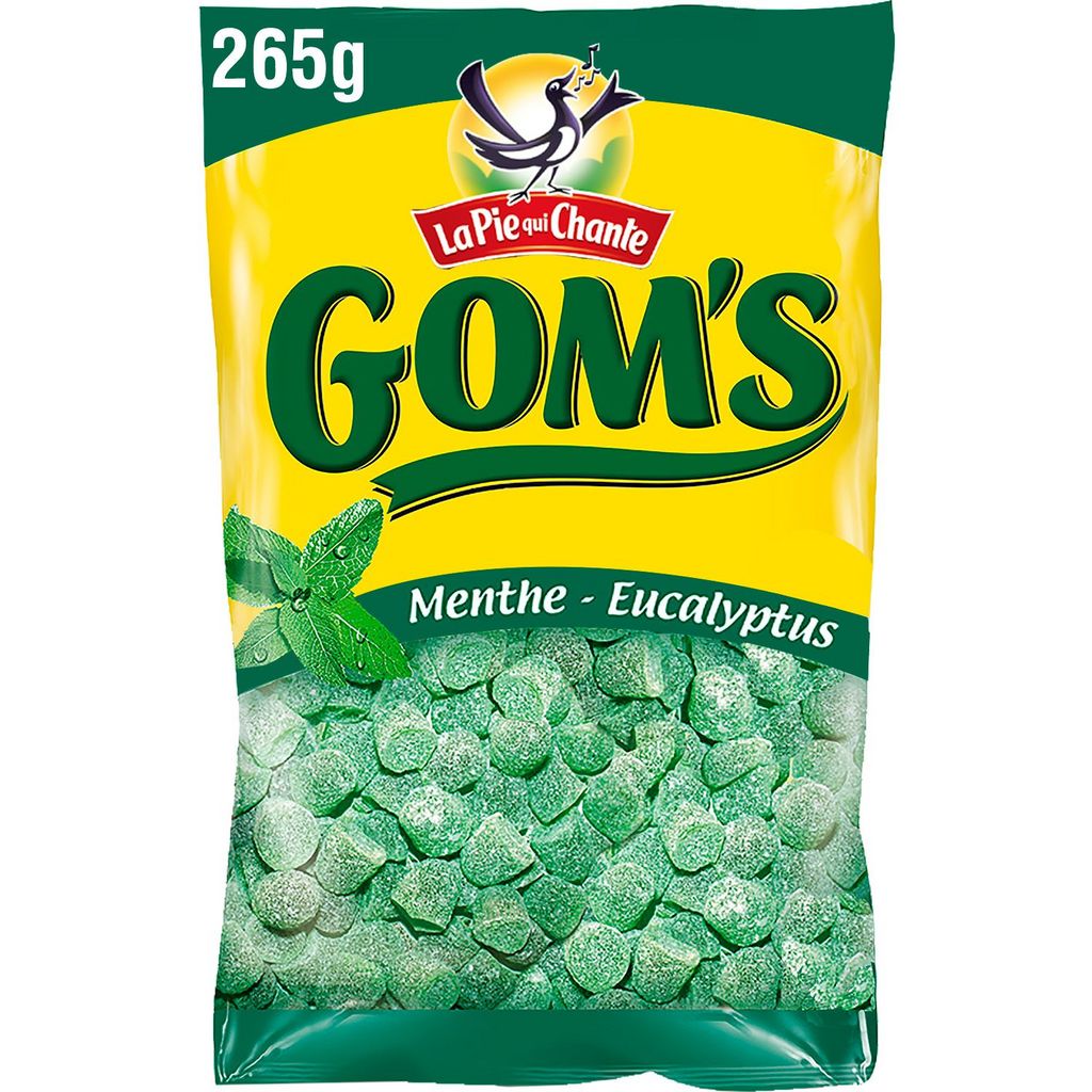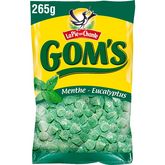 Ingrédients : Sirop de glucose, sucre, gélifiant (gomme d'acacia 10%), gélatine, colorants (E161b, E133), arôme, arôme naturel d'eucalyptus