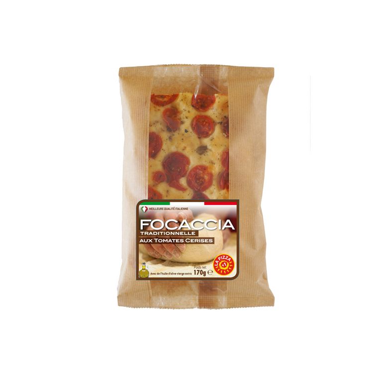 Focaccia avec des tomates cerises et huile d'olive vierge extra (8.8%)