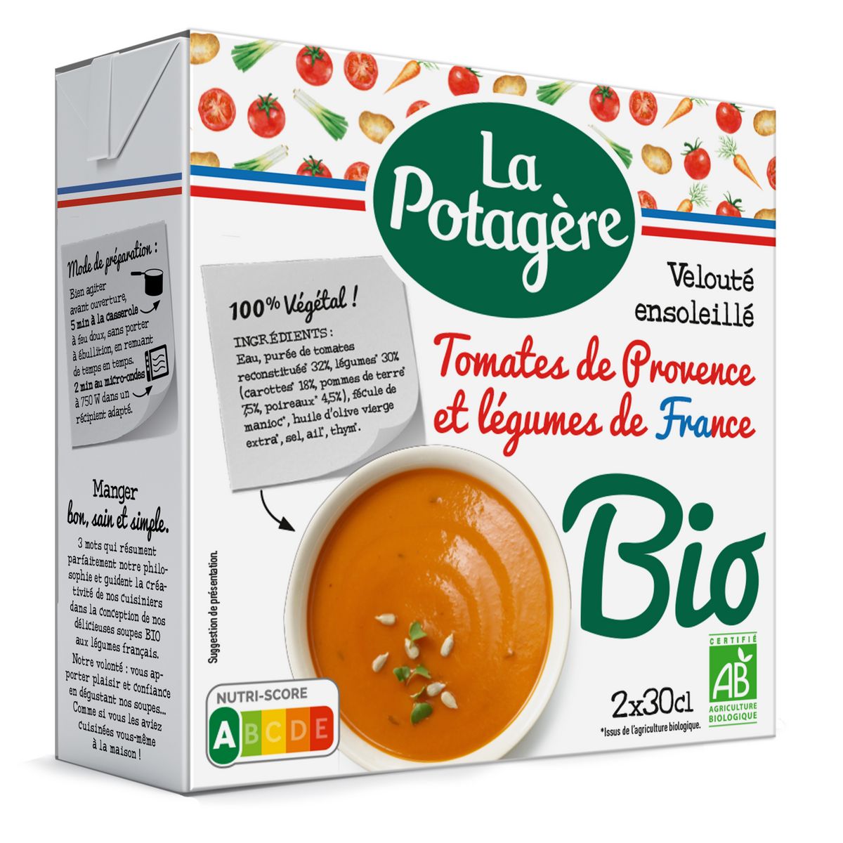 Soupe bio veloutée ensoleillée tomates de Provence et légumes de France
