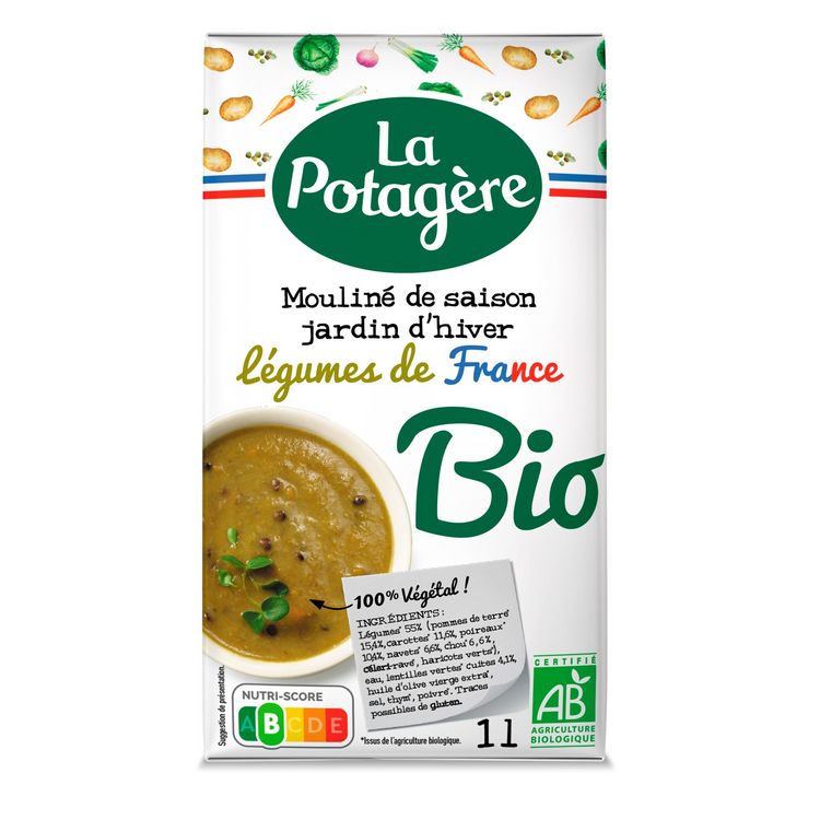 Une nouvelle recette s'ajoute à notre gamme de soupes inédites : Bio, 100% végétales, locales (les légumes qui les composent sont d'origine FRANCE), et Clean Label (juste les ingrédients essentiels, cuisinés "comme à la maison.