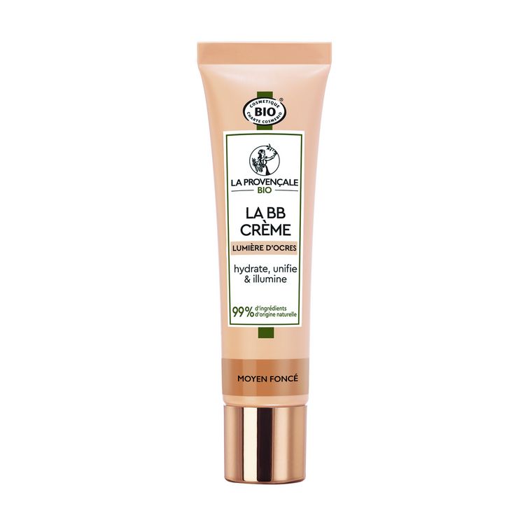 BB Crème, bio, maquillage, nutrition, protection, texture, légère, texture fondante, crème teintée, hydrate, illumine, teint, certifié bio, 100% d'ingrédients origine naturelle, huile d’olive bio AOP Provence, belle mine, Ecocert, peau éclatante, non comédogène, dermatologique, lumière d’ocres, moyen foncé