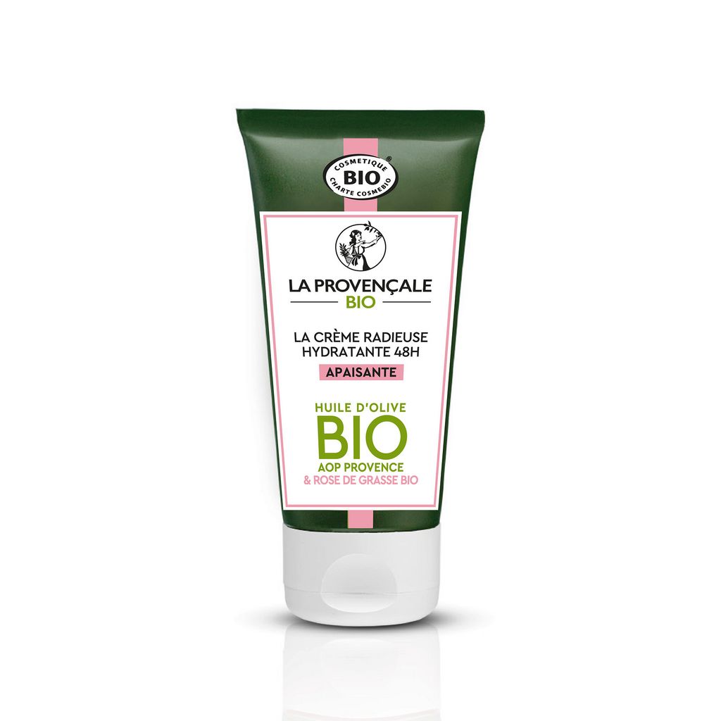 Crème radieuse hydratante 48h apaisante huile d'olive bio AOP Provence & rose de Grasse bio