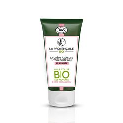 La Provençale a créé la Crème Radieuse Apaisante Hydratante 48h pour hydrater parfaitement pendant 48H les peaux sèches et sensibles et les protéger des agressions extérieures. Elle est certifiée bio et contient 99% d'ingrédients d'origine naturelle. C’est grâce à sa composition unique qui associe l'Huile d'Olive BIO AOP Provence riche en Polyphénols à l'Extrait de Rose de Grasse BIO que notre crème tient toutes ses promesses. Elle est fabriquée en France à Creuzier. Les peaux sèches et sensibles sont hydratées parfaitement pendant 48H. La texture onctueuse de notre Crème Radieuse Apaisante Hydratante 48h enveloppe la peau d’un voile de douceur pour l’apaiser et la protéger des agressions extérieures.