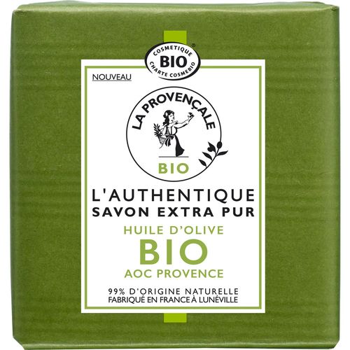 LA PROVENCALE a créé L'Authentique Savon Extra-Pur pour nettoyer la peau en douceur sans l'assécher. C'est grâce à sa composition unique enrichie en huile d'olive BIO AOC Provence qu'il tient toute ses promesses. Obtenu selon des méthodes traditionnelles de saponification, ce savon est idéal pour la toilette des mains et du corps. Sa mousse délicate et son parfum créé dans la région de Grasse laissent la peau confortable et l'enveloppent d'un sillage aromatique pour un véritable moment de détente. La couleur et la texture de ce savon peuvent changer, c'est une marque de son authenticité.
