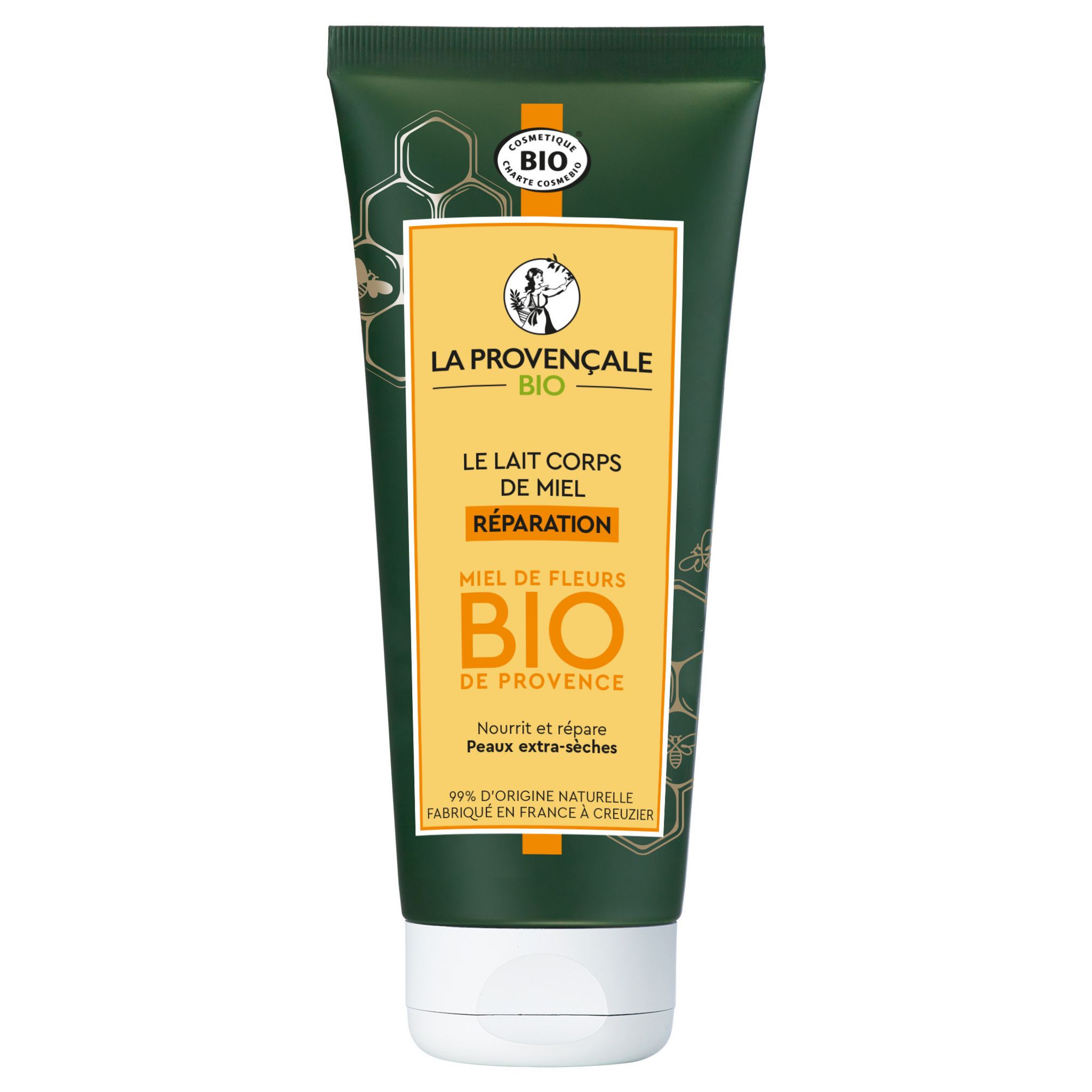 La Provençale a crée le Lait Corps de Miel Réparation pour nourrir intensément les peaux extra-sèches, leur redonner douceur et confort et réparer la fonction barrière de la peau. Certifié Bio, 99% d'origine naturelle, fabriqué en France à Creuzier. La peau est intensément nourrie et retrouve confort et douceur. La peau est protégée, les sensations de tiraillement diminuent.