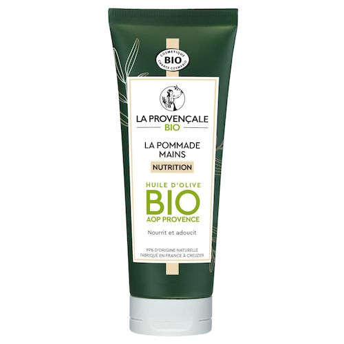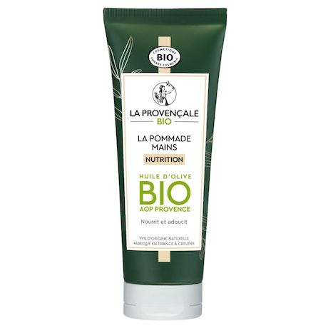 La Provençale a créé LA POMMADE NUTRITIVE MAINS pour nourrir, adoucir et réparer vos mains. Elle est certifiée bio et contient 99% d'ingrédients d'origine naturelle. C'est grâce à sa composition unique et à sa teneur en Huile d'Olive BIO AOP Provence qu'elle tient toutes ses promesses. Cette pommade protectrice nourrit intensément les mains et redonne confort et douceur. Sa texture onctueuse enveloppe les mains d'un délicat sillage floral. Elle est fabriquée en France à Creuzier. Les mains sont adoucies, nourries et réparées