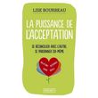 Ce livre révèle le coeur de l'enseignement de Lise Bourbeau : la clef du bonheur est de pratiquer l'acceptation de ce que nous sommes. Cessons de nous blâmer ou de critiquer les autres, mais apprenons à nous écouter. Grâce à Lise Bourbeau vous saurez comment faire la différence entre accepter, se soumettre et comprendre. Vous découvrirez le sens de l'amour véritable - que nous confondons trop souvent avec le dévouement, la pitié ou la passion. Ce livre unique vous épaulera tout au long de votre vie. Lise BOURBEAU , auteur de nombreux best-sellers traduits dans le monde entier, est la fondatrice des éditions E. T. C. - Ecoute Ton Corps -, devenues la plus grande école du développement personnel au Québec. Livre précédemment paru sous le titre : Amour, amour, amour. la Puissance de l'acceptation .