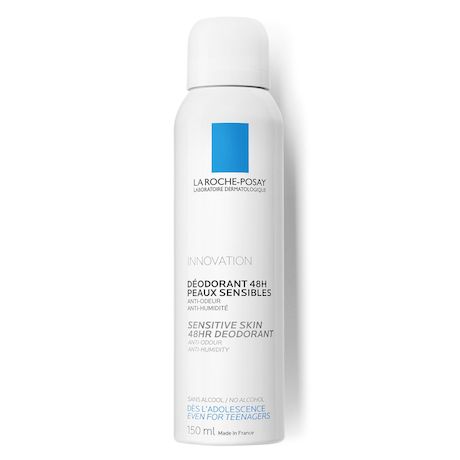 Le déodorant spray actif naturel Peaux Sensibles 48h de La Roche-Posay neutralise les odeurs pendant 48 heures* et lutte contre l’humidité. A l’Allantoïne apaisante et à l’Oxyde de Magnésium, un actif d’origine minéral pour une efficacité anti-odeur, comparable aux sels d’aluminium. Le déodorant anti-odeurs anti-humidité de La Roche Posay convient même pour les adolescents à partir de 13 ans. Adapté aux aisselles sensibles et pour un usage après rasage. *48h: test sensoriel Efficacité Anti Odeurs, Anti Humidité 48h