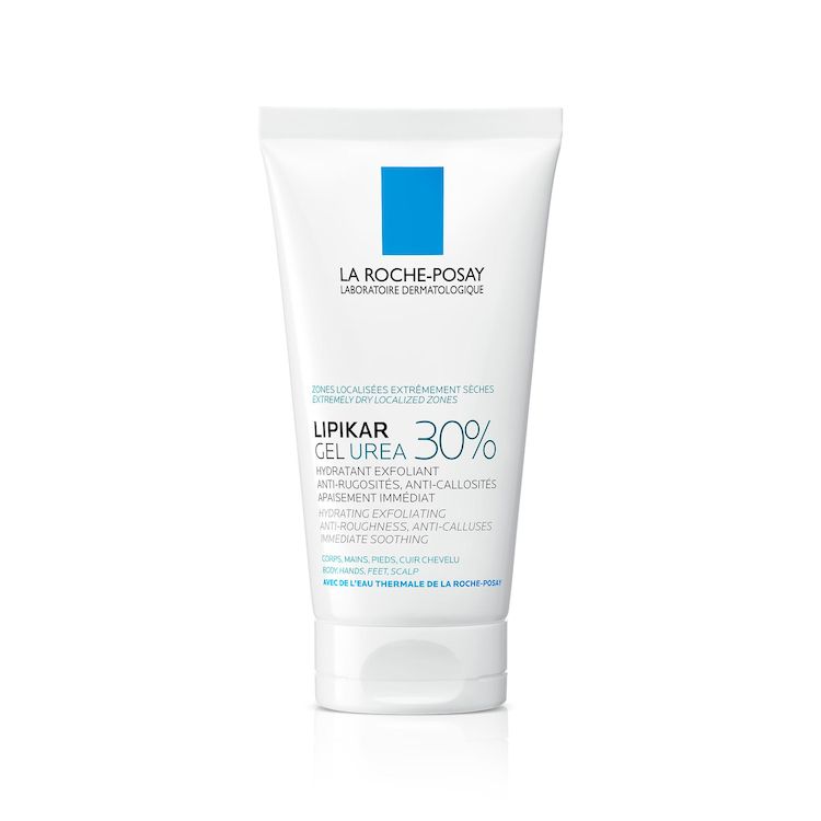 La Roche Posay Lipikar Gel hydratant exfoliant Urea 30% anti-rugosité, anti-callosités, apaissement immédiat zones localisées extrêmement sèches. Traitement dermatologique intensif qui transforme visiblement les zones hyperkeratosiques dès le 1er usage. Cible les plaques sèches et les kératoses même sévères sur le corps, les pieds, les mains, le cuir chevelu. Sa formule combinant de l'Urée 30% et la Niacinamide est non irritante : l'urée 30 possède des propriétés kératolytiques, antibactériennes et hydratantes et la niacinamide agit comme agent apaisant. Testé sur peaux sensibles. -88% de sécheresse dès la première application (dès 30 minutes après application). Efficacité hydratante 48 heures La peau est plus lisse à +34% après 30 minutes (étude clinique sur 44 sujets après une application). 71% les zones de sécheresse sont moins rugueuses immédiatement et 88% après 28 jours d'utilisation (auto-évaluation, 80 femmes et 11 hommes, deux fois par jour pendant 28 jours).