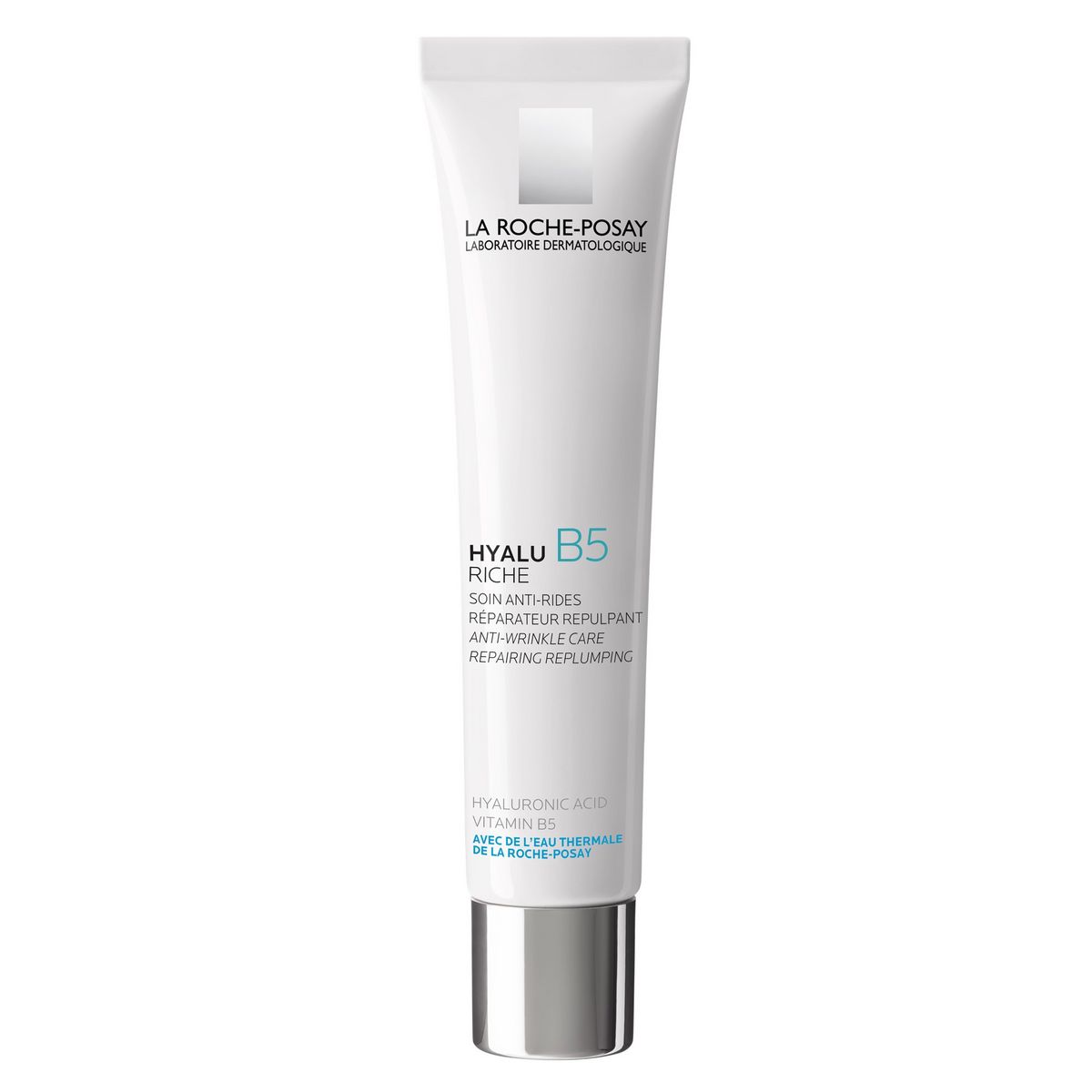 LA ROCHE-POSAY Hyalu B5 Riche Soin riche anti rides hydratant réparateur repulpant A l'acide hyaluronique et à la vitamine B5 Avec de l'eau thermale de La Roche-Posay Repulpe, répare et hydrate Rides, perte de volume et d’élasticité Peaux sèches à très sèches Intensément nourrie, la peau retrouve sa souplesse, paraît plus lisse et rebondie. Les rides et ridules sont visiblement réduites, la peau apparaît réparée et apaisée.