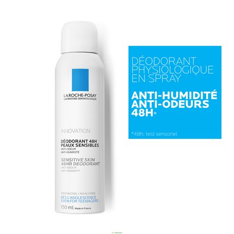 LA ROCHE POSAY Déodorant physiologique 48h Anti-odeurs Anti-humidité Spray Sans alcool Actif naturel Peaux sensibles Efficacité Anti Odeurs, Anti Humidité 48h