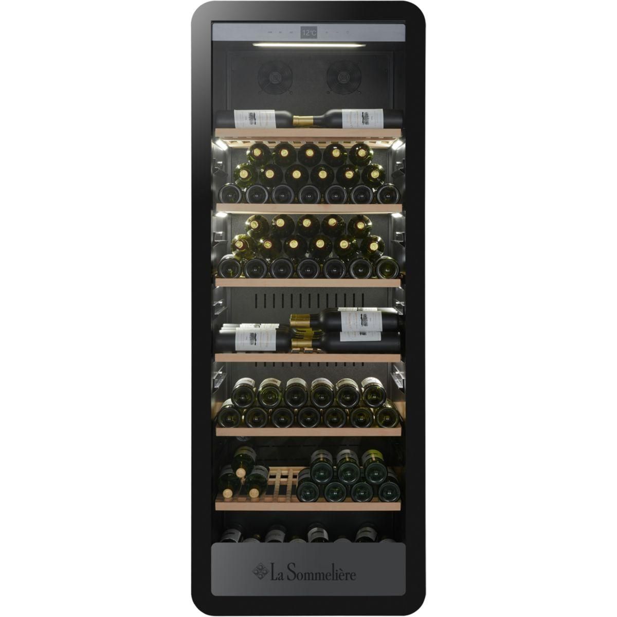 | Le saviez-vous ? | La capacité annoncée est la capacité maximale mesurée selon le standard européen EN62552. Ce standard est calculé avec des bouteilles 75cl type bordeaux tradition. La capacité annoncée correspond donc au nombre de bouteilles de bordeaux possibles avec le nombre de clayettes fournies dans la cave. | |