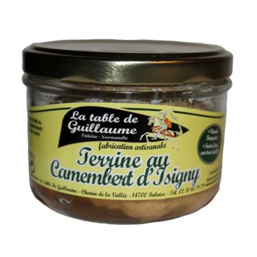 Ingrédients : Ingrédients : viande de porc, camembert d'Isigny au lait cru (10% - lait de vache cru, sel , ferments, présure, épaississants : E509), eau, œufs entiers, lait écrémé en poudre, sel, épice.