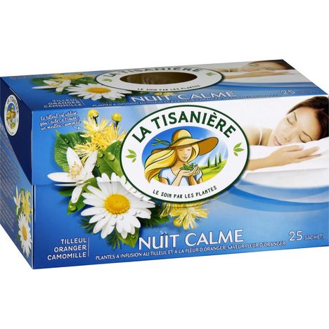 Ingrédients : tilleul (61%), oranger (21%), camomille (10%), arômes (8%).