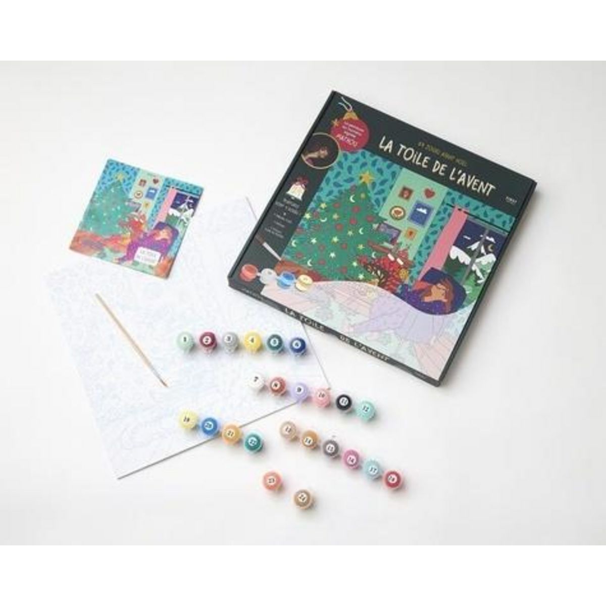 LA TOILE DE L'AVENT. 24 JOURS AVANT NOEL. COFFRET AVEC 24 PEINTURES DONT 1 DOREE , + 1 TABLEAU TOILE, 1 PINCEAU ET 1 FEUILLET GUIDE DU PEINTRE, Mathou