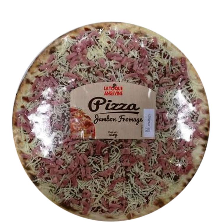 Pizza au jambon cuit standard, au fromage fondu et à l’emmental.