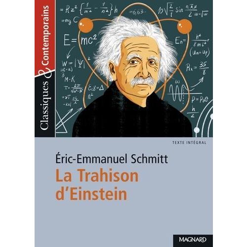 E = mc. La formule est plus célèbre encore que son inventeur, Albert Einstein. Pourtant elle réduit l'homme au seul scientifique, faisant oublier le bon vivant, le Juif exilé, le pacifiste, l'humaniste...Dans cette pièce, Einstein sympathise avec un vagabond et lui confie ses doutes : il hésite à commettre une trahison. Veut-il espionner les Etats-Unis en faveur des communistes, comme le soupçonne le FBI ? Ou, face à la menace nazie, s'apprête-t-il à trahir ses idéaux ? Avec son style vif et alerte et ses personnages hauts en couleur, Eric-Emmanuel Schmitt plonge ses lecteurs dans l'atmosphère de la Seconde Guerre mondiale puis de la guerre froide. Il redonne vie à un Einstein mélancolique, plein de facéties mais se désolant de voir l'humanité si désireuse de se détruire. Les objets d'étude : Agir dans la cité : individu et pouvoir (alte de 3e) / Le théâtre du XVIIe siècle au XXIe siècle (alte de 2de) L'accompagnement pédagogique : Une présentation de l'auteur et de l'oeuvre Un questionnaire pour entrer dans la lecture Le texte intégral Des questions de compréhension par thème avec des encadrés sur les grandes notions littéraires Un groupement de textes thématique : portraits de scientifiques Une sélection de ressources documentaires en lien avec l'oeuvre (bibliographie, filmographie...) Une interview exclusive d'Eric-Emmanuel Schmitt