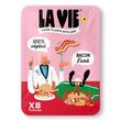 Le bacon végétal La Vie™ est une alternative végétale à base de légumineuses concoctée en Vendée, qui reproduit tout ce qu’on aime dans le bacon… sans le cochon. Meilleur pour votre santé, celle des animaux, et celle de la planète, avec 80 % d’émissions de CO₂ équivalent en moins. Une recette vegan bluffante à la texture crousti-fondante, 100 % végétale, 100 % plaisir. Bacon veggie officiel de Burger King®, il est bien sûr parfait dans vos burgers, mais aussi pour votre brunch et pour égayer toutes vos recettes veggie.