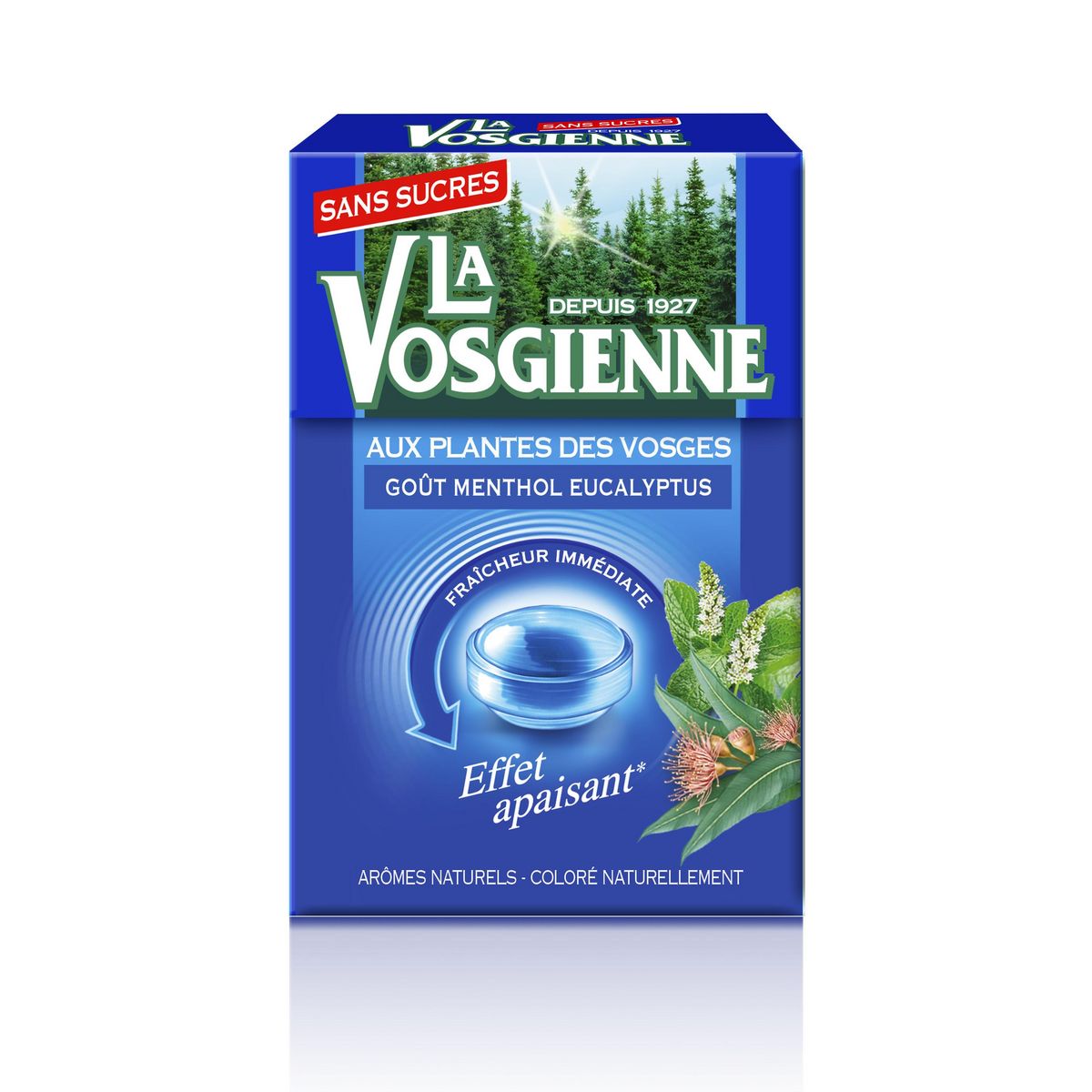 Confiseries sans sucres goût menthol eucalyptus.
