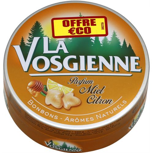 La Vosgienne parfum Miel Citron, c'est un bonbon au goût unique, une alliance de saveurs miel et citron qui procure une douce sensation de fraîcheur gourmande. Déguster un bonbon La Vosgienne Parfum Miel Citron, c'est retrouver tous les plaisirs d'une escapade en pleine nature. Confiseries aromatisées - Parfum miel et citron