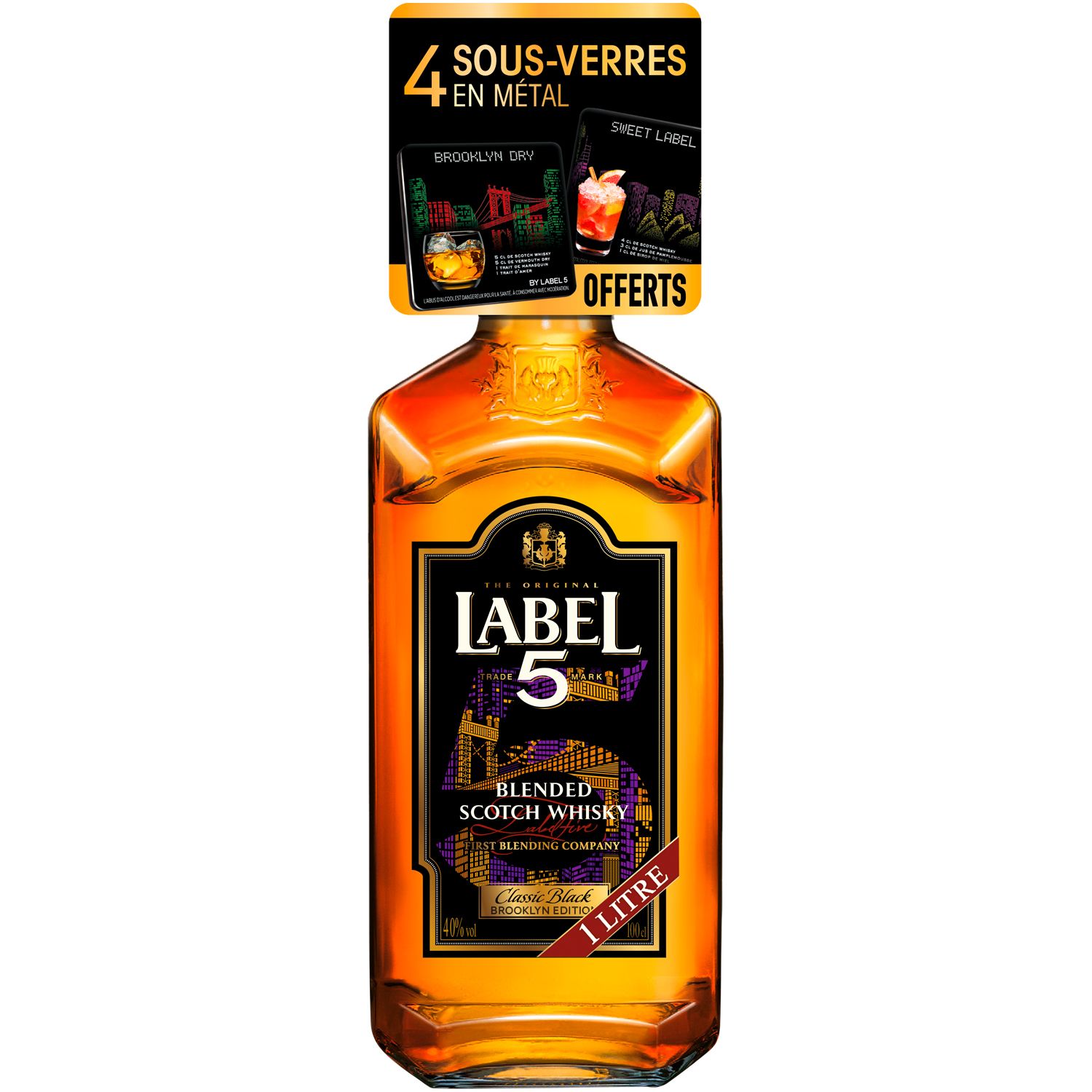 Label 5 scotch whisky 40° -1l doseur et livret cocktail