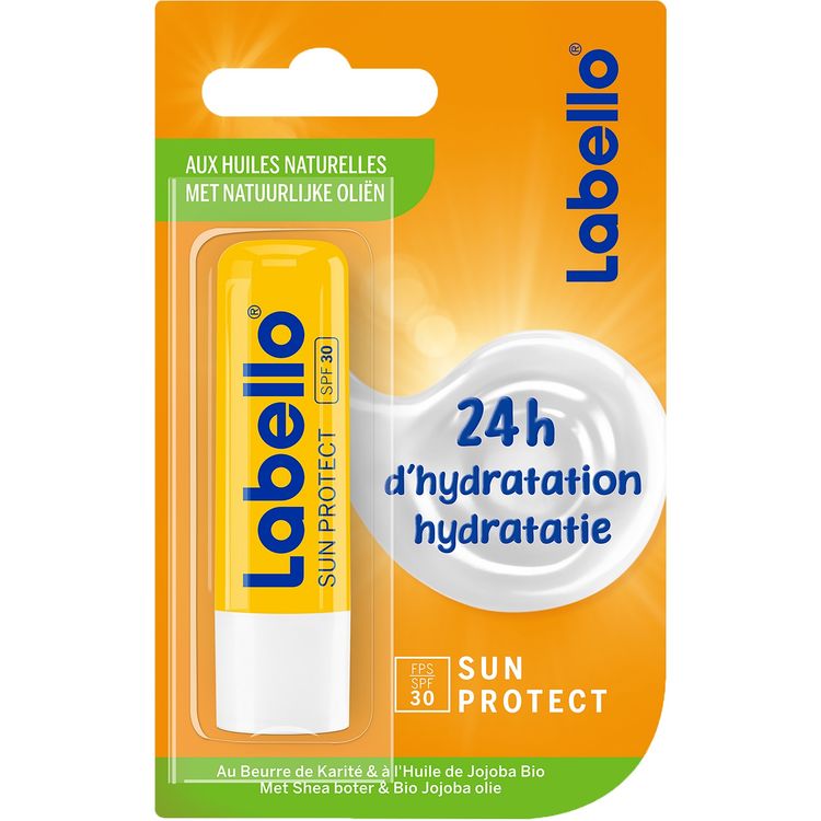 Le Labello Protection Solaire protège vos lèvres contre les rayons UVA/UVB et les méfaits du soleil grâce à sa protection FPS 30. Sa formule unique à base d'huiles naturelles et de beurre de karité a une texture onctueuse qui fond instantanément sur vos lèvres et les maintient hydratées pendant 24 heures*.